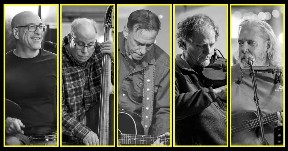 In a special all-acoustic show, The Old Part of Town brings their eclectic blend of folk-rock, country-blues, and bluegrass to Manor Mill. With tight harmonies and an infectious on-stage camaraderie, the band features singer-songwriters and multi-instrumentalists Matt Douglass and Sam Nitzberg, Upright Dave Frieman on bass, Steve Raskin on drums, and, in his FINAL PERFORMANCE with the band after a 7-year run, Brian Whaley on violin and vocals.