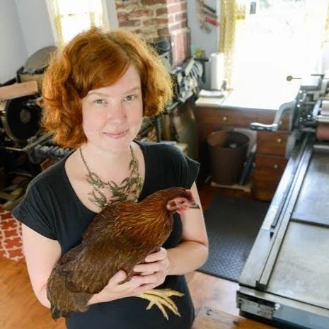 Val Lucas, artist and educator, is the proprietor of Bowerbox Press, specializing in woodcut and letterpress prints, bookbinding, and custom design and printing. She teaches Letterpress and Bookbinding at Towson University and offers related workshops. Val is a graduate of the Maryland Institute College of Art, and lives in Monkton, MD.