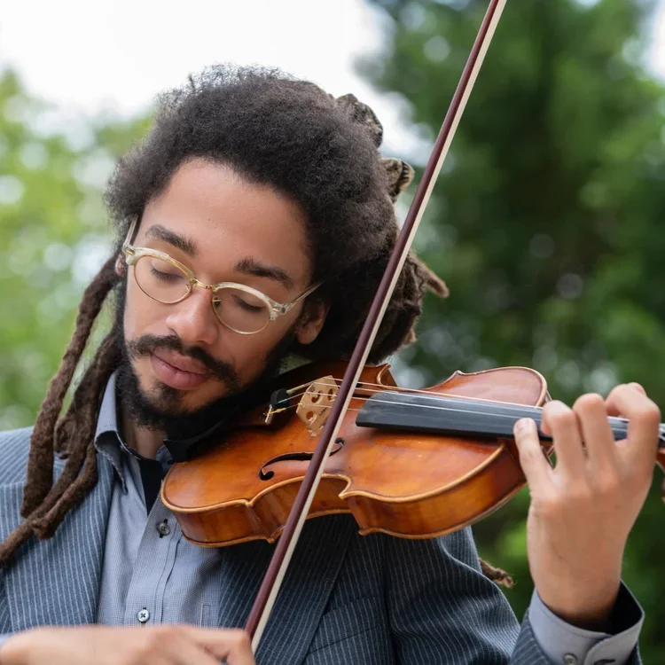 Violinist Maximilian Jacobs weaves jazz, classical music, and klezmer into his original compositions and virtuosic performances. He studied classical violin from the age of five and taught himself jazz at the jam sessions of his hometown of Baltimore City. Max has served as an Artist in Residence for Strathmore and played at local venues like the Kennedy Center Millenium Stage, An Die Musik, and the Charm City Django Jazz Fest.