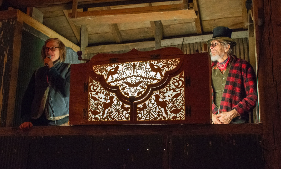 Katherine and Dan’s Crankie performances transport audiences to another time and place, with their authentic and personal interpretations of folk tales, oral histories, and songs. Stories and songs shift with the times, uncovering new meanings in old words, new ways of talking about the communal pathways that led us to where we are today. Crankies are a way to interpret our uncertain times, to draw artistic inspiration and power from the sources of meaning in their lives. History, community, folk tales, ballads, live performance, and environmental instability all manifest in the sounds, feelings, and sensations that permeate their Crankies.